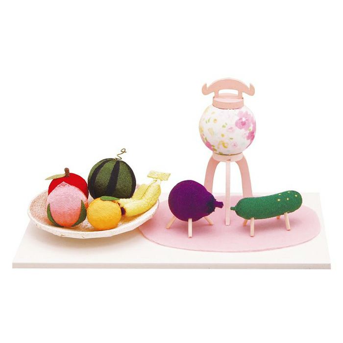 京都の職人が1点1点丁寧に仕上げた、ちりめん細工の果物をお供え。