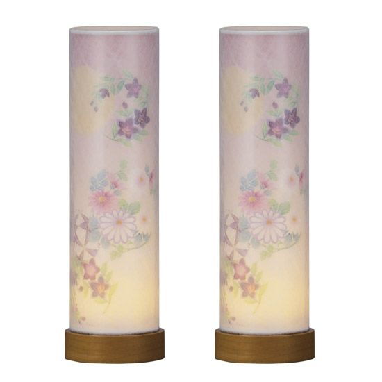 月の光に映える、色とりどりのかわいらしい花々。 和紙の風合いを通して、やさしく可憐な雰囲気を漂わせます。 LEDコードレスで、どこにでも置けるコンパクトサイズ。