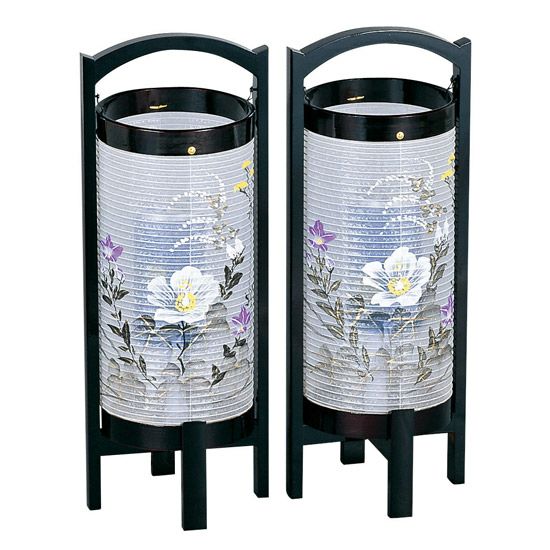「創作提灯 回転灯 みやび 3号 一対」は、火袋に芙蓉の花の柄をあしらった、モダン型の提灯。