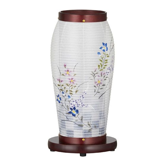 「創作提灯 まほろば 1号」は、火袋に桔梗と撫子の柄をあしらった、モダン型の提灯。
