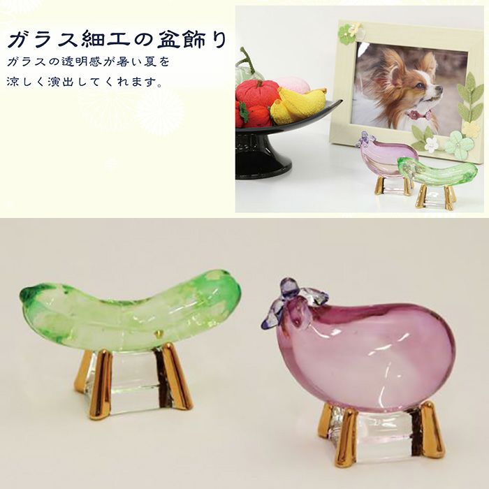 盆用品 精霊馬 ちょこっと飾れるガラスの精霊馬セット