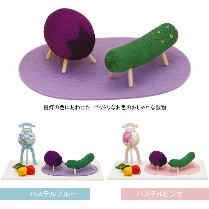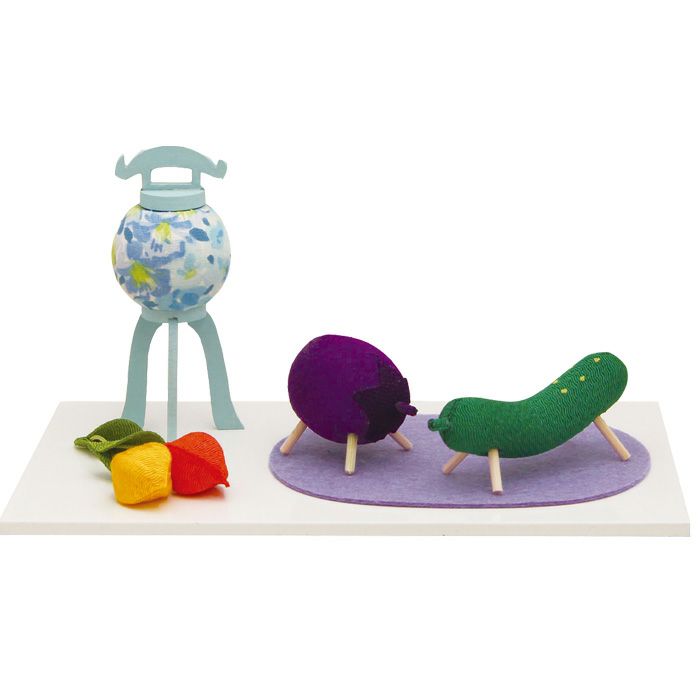 盆提灯と精霊馬。お盆のお迎えに欠かせないお飾りが、可愛らしいサイズでセットになりました!