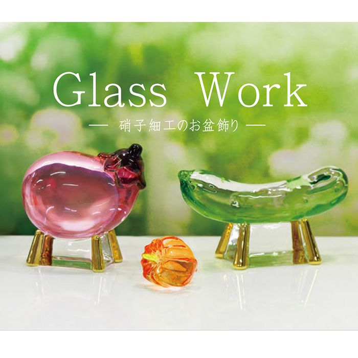 お盆のお供えに必要な精霊馬を、透き通るガラスで可愛らしく作りました。