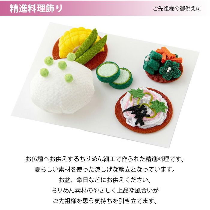 お仏壇へお供えするちりめん細工で作られた精進料理です。