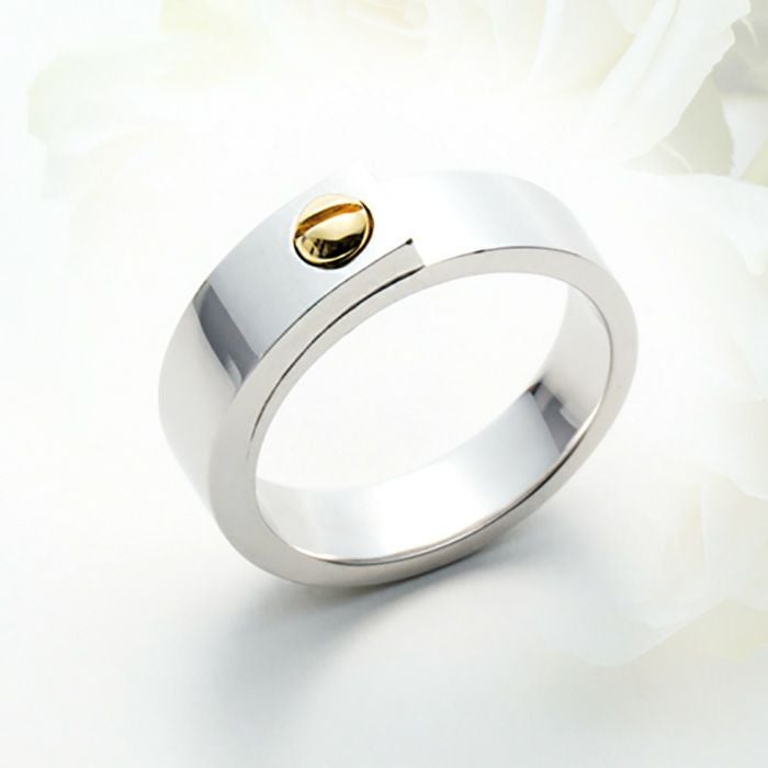 ご遺骨をお納めするためのネジをあえて指輪の前面に置き、金色の鍍金をかけておしゃれにまとめました。