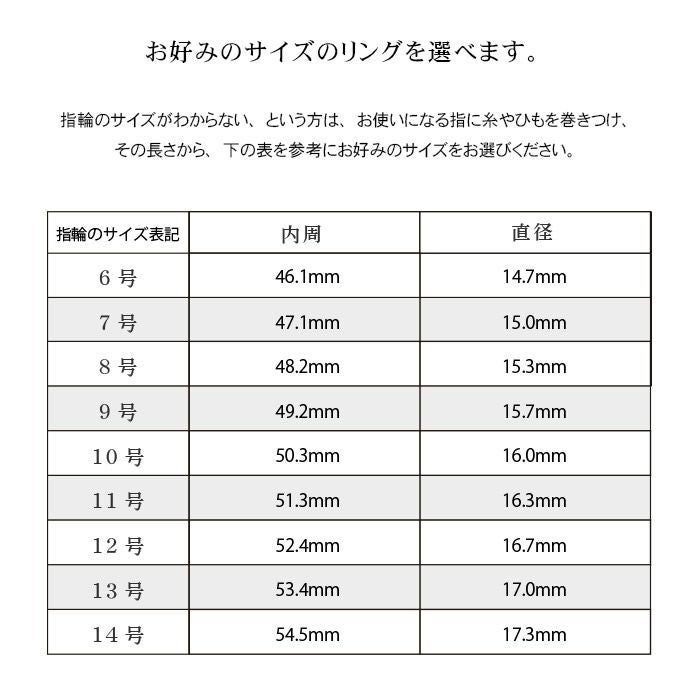 ・上記以外のサイズ(15~20号まで可能)や、ホワイトゴールド・プラチナ素材でも特注制作を承ります。価格や納期はお問合せ下さい。(納期の目安:約4週間)