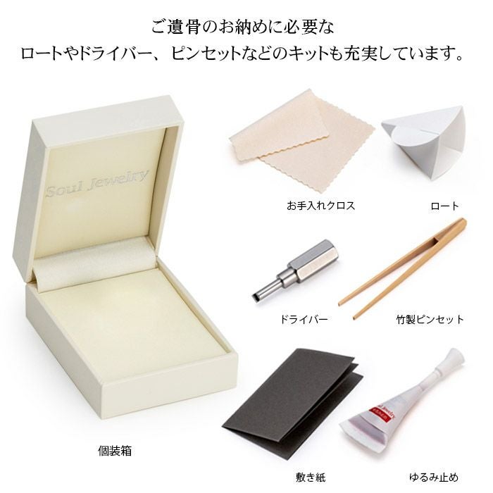 個装箱、納骨キット、専用ドライバー、竹製ピンセット、敷き紙、紙製ロート、お手入れクロス、取扱説明書、ねじゆるみ止め固着剤