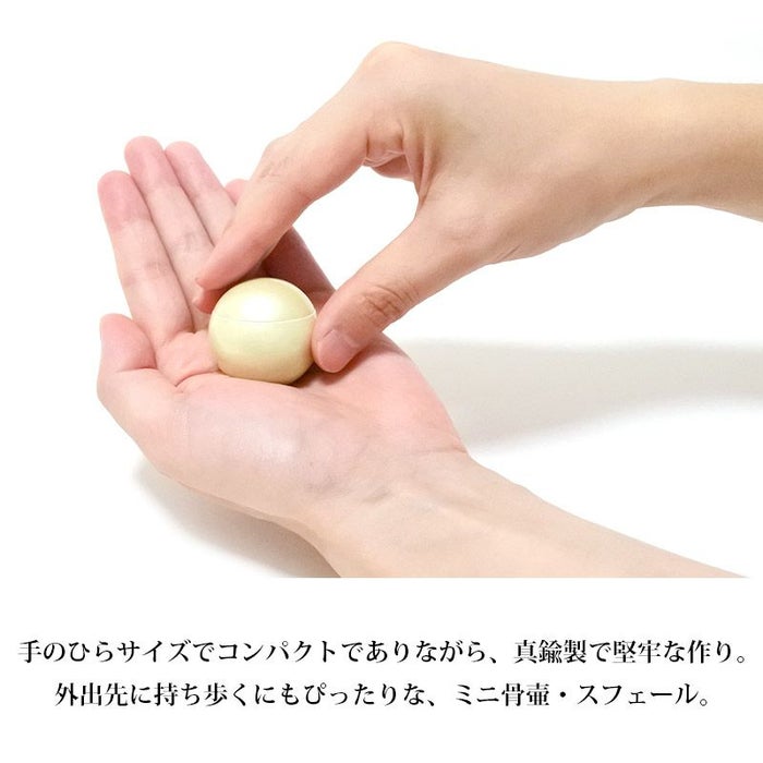 ミニ骨壷スフェールは、手のひらサイズでコンパクトでありながら、真鍮製で堅牢な作りになっているので、外出先に持ち歩くにもぴったり。