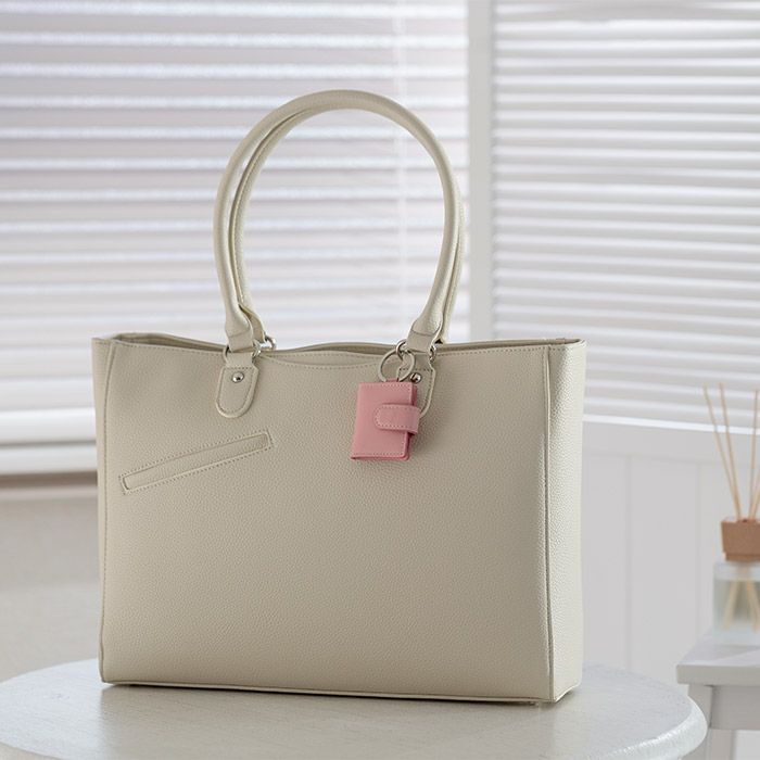 キーホルダーのポケット部分のホックを開けて納めてください。