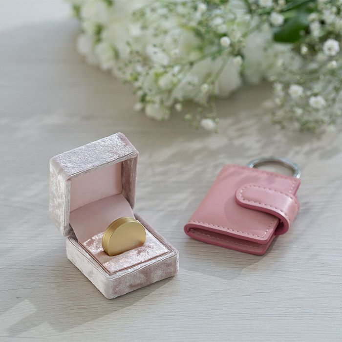 お出かけの時は携帯用ホルダーにいれてバッグチャームに、ご自宅では高級感あふれるベロア調の専用ボックスに入れて飾れます。