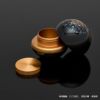 心落ち着く金属製の球形に、故人を偲ぶ手元供養になるものとして手のひらに包み込める小さな壺にしました。