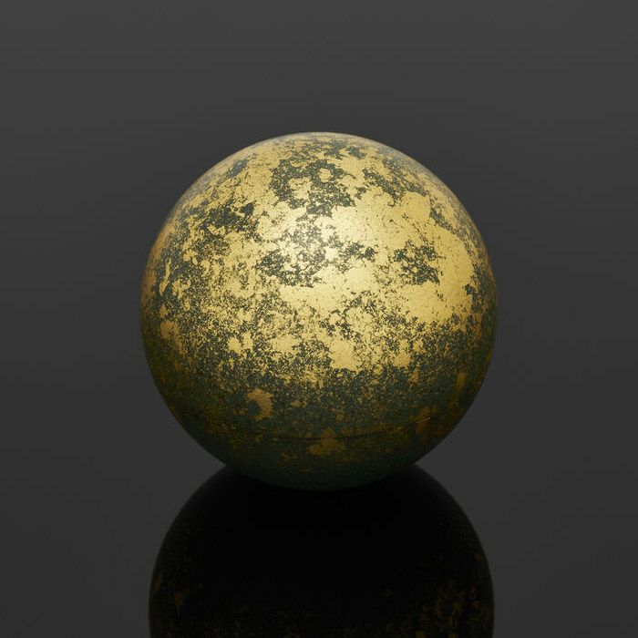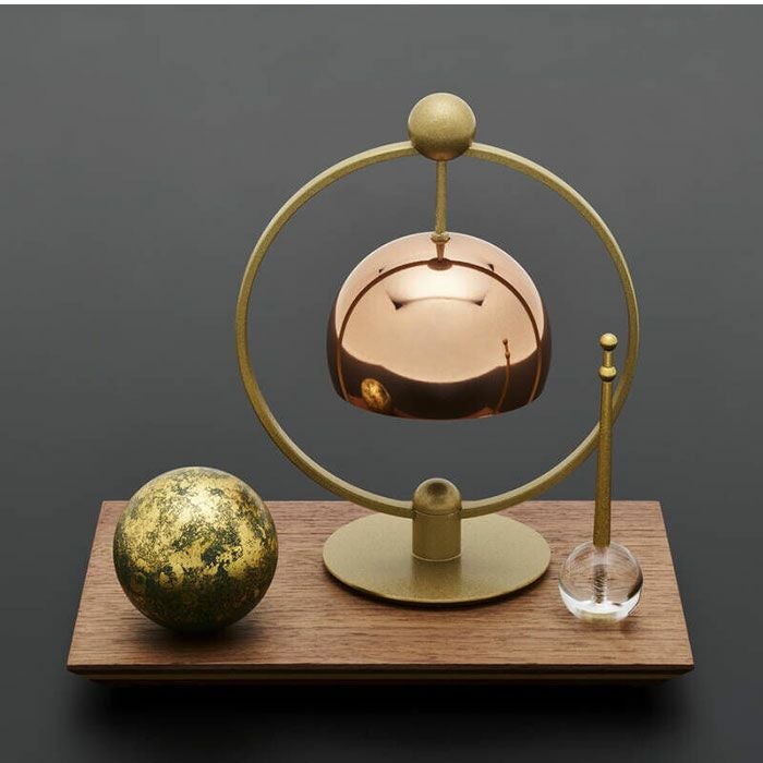 心落ち着く金属製の球形に、故人を偲ぶ手元供養になるものとして手のひらに包み込める小さな壺にしました。