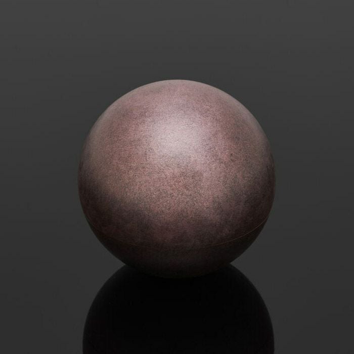 心落ち着く金属製の球形に、故人を偲ぶ手元供養になるものとして手のひらに包み込める小さな壺にしました。