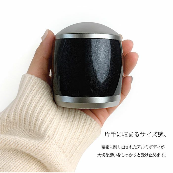 片手で持てるサイズながら、ずっしりとした重みがあり、安定感のあるミニ骨壷です。