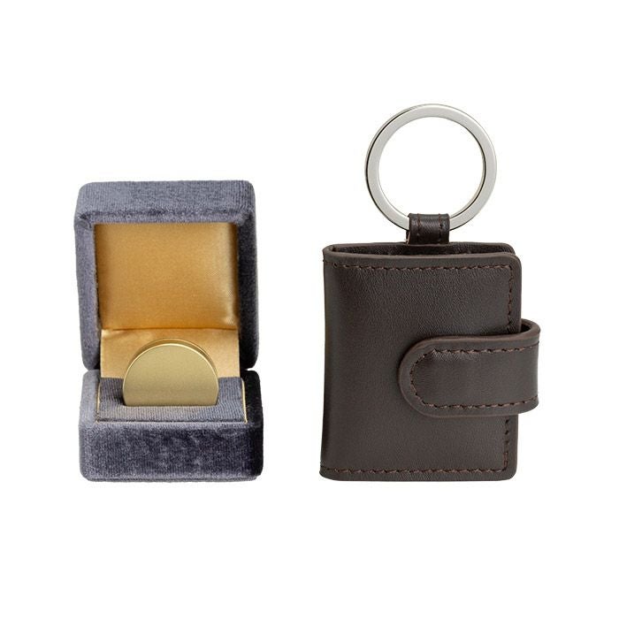 キーホルダーのポケット部分のホックを開けて納めてください。