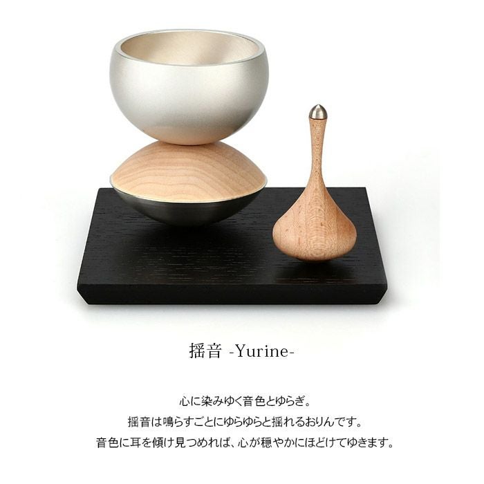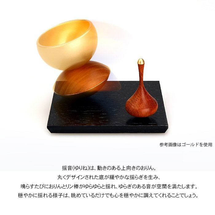 丸くデザインされた底が緩やかな揺らぎを生み、鳴らすたびにおりんとリン棒がゆらゆらと揺れ、ゆらぎのある音が空間を満たします。