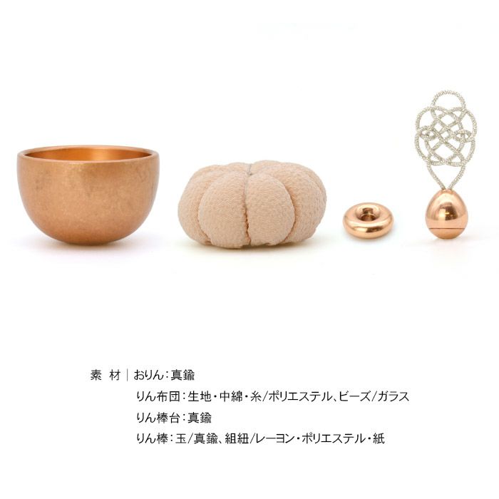 ・りん布団:生地・中綿・糸/ポリエステル、ビーズ/ガラス | φ42×H21mm
