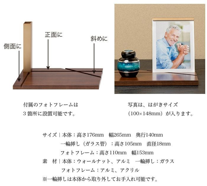 大切な方の遺影と一輪挿しが寄り添う、フォトタイプ。