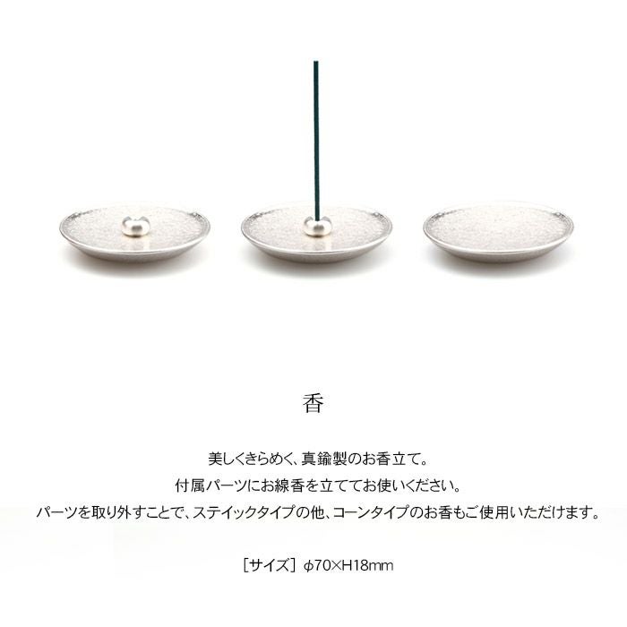 お手入れがしやすく、シンプルなデザインでどんな空間にも合わせやすい香立です。