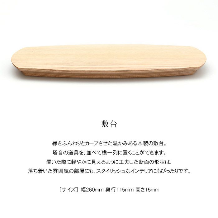 ・敷台:天然木(オイルフィニッシュ)/幅260mm 奥行115mm 高さ15mm