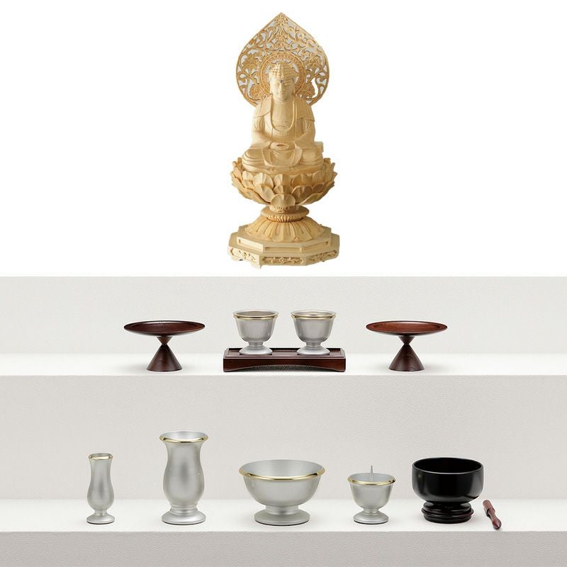 お仏壇の色味や形に合わせてセレクションした、御本尊・具足各種・おリンをセットにしました。