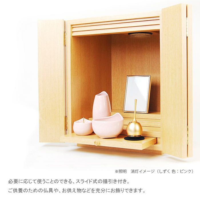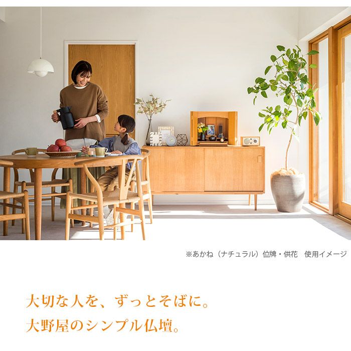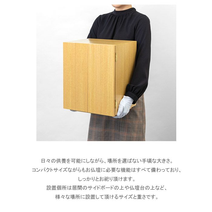 日々の供養を可能にしながら場所を選ばないコンパクトサイズ。カジュアルなリビングや寝室にも馴染みます。