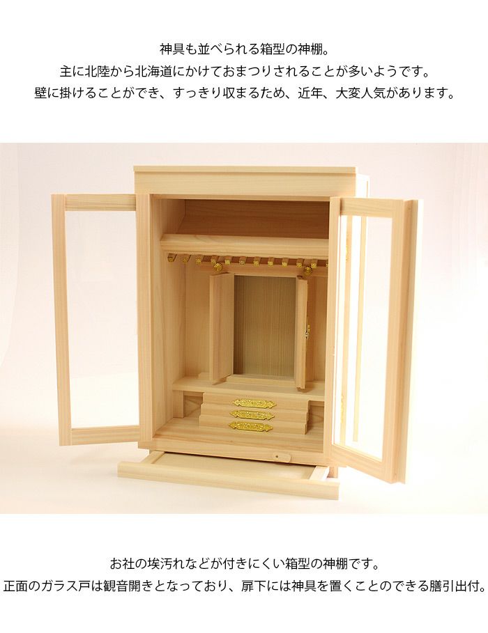 神具も並べられる箱型の神棚。