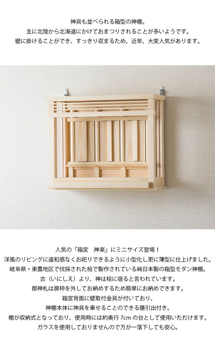 岐阜県・東農地区で伐採された桧で製作されている純日本製の箱型モダン神棚。