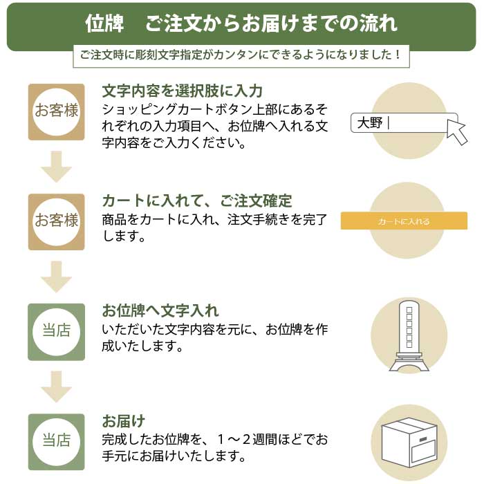 完成したお位牌を、1~2週間ほどでお手元にお届けいたします。