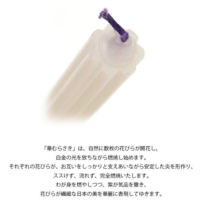 「華むらさき」は、自然に数枚の花びらが開花し、白金の光を放ちながら燃焼し始めます。