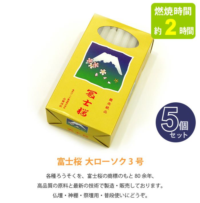 【ローソク】富士桜 大ローソク 3号 (燃焼時間約2時間・40本入り) 5個セット