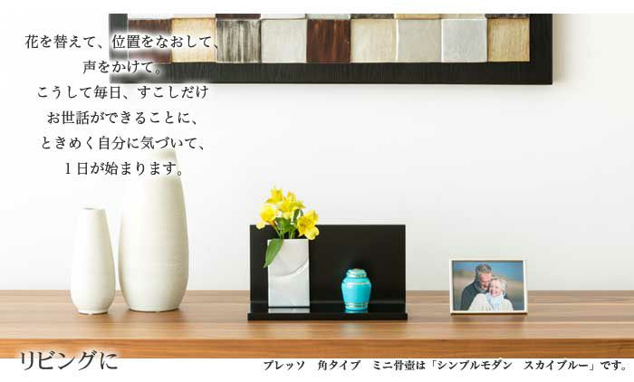 存在感のあるアルミの表情を端正な長方形に湛えた“プレッソ角タイプ”は、大切な想いを静かに深く表す男性的な佇まいのステージです。