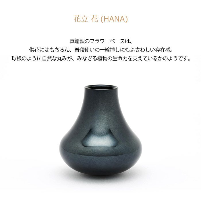 真鍮製のフラワーベースは、供花にはもちろん、普段使いの一輪挿しにもふさわしい存在感。 球根のように自然な丸みが、みなぎる植物の生命力を支えているかのようです。