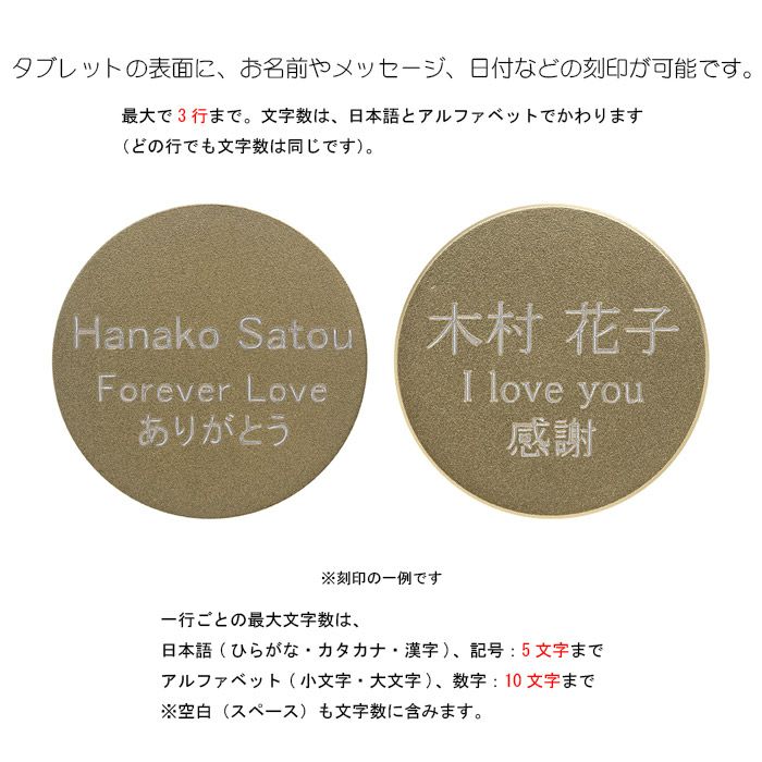 タブレット表面にはメッセージを刻印できます。