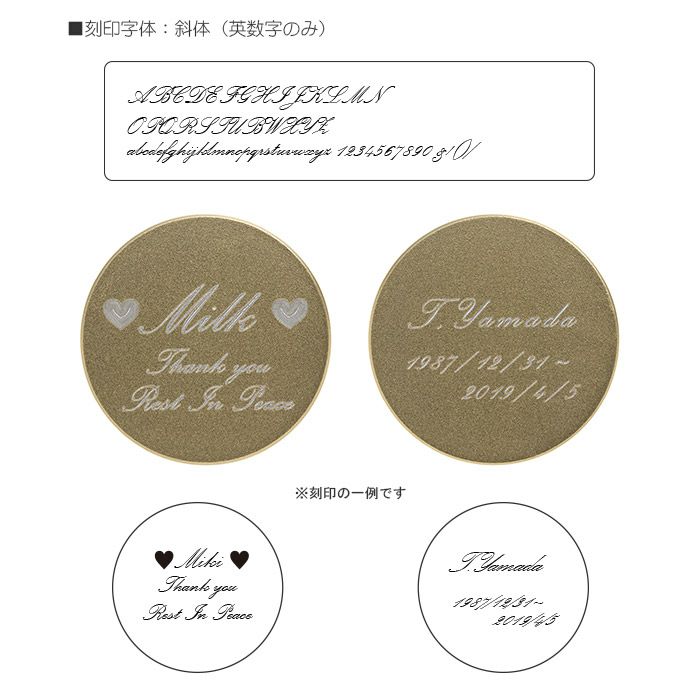 ・使用書体 英字:ゴシック系、明朝系、斜体文字(使用字体は1商品につき1種類のみ)