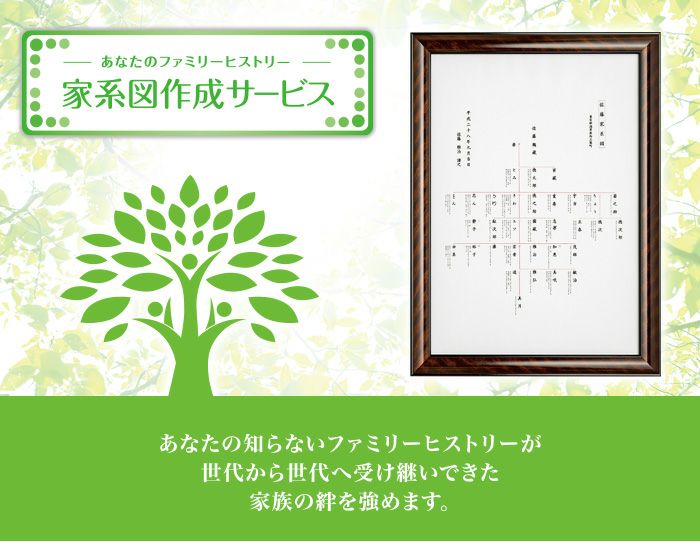 世代から世代へ、命のリレーを明らかにする家系図は、まさに家族の絆です。