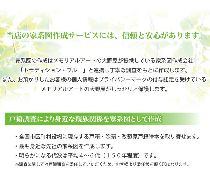 メモリアルアートの大野屋で家系図を作成してみませんか?