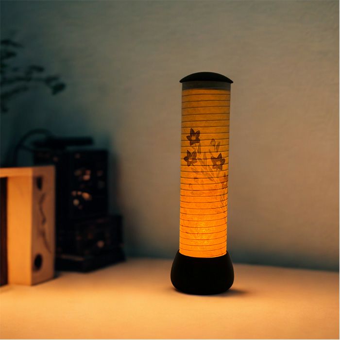 日本独特の伝統工芸品である「岐阜(ぎふ)提灯」。そんな透きとおるような薄い和紙や絹布に繊細な秋草や山水の絵柄をあしらった岐阜提灯の技術を用い、コンパクトでモダンな提灯に仕上げました。