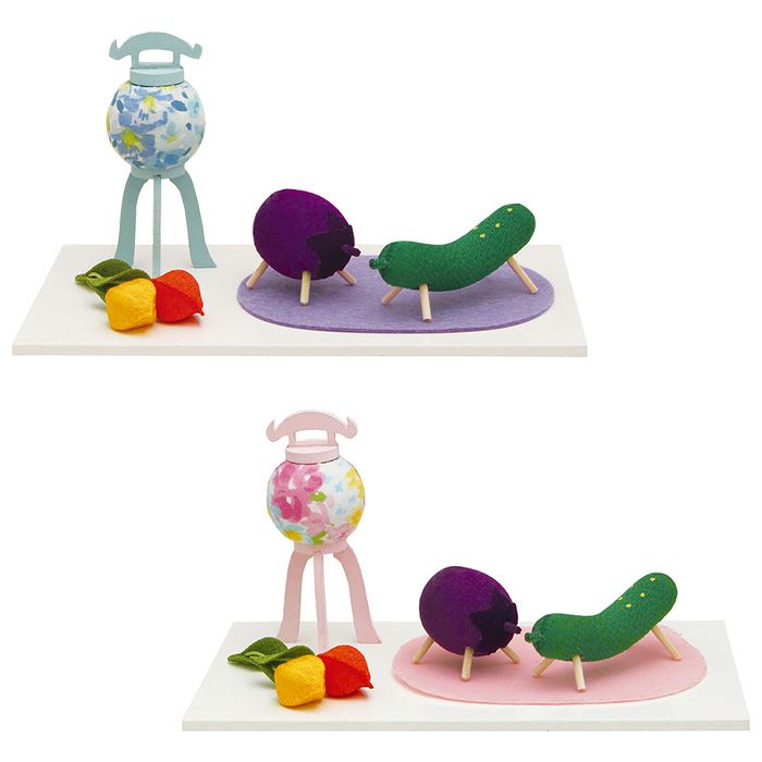 盆提灯と精霊馬。お盆のお迎えに欠かせないお飾りが、可愛らしいサイズでセットになりました!