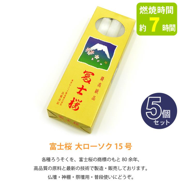 【ローソク】富士桜 大ローソク 15号 (燃焼時間約7時間・8本入り) 5個セット
